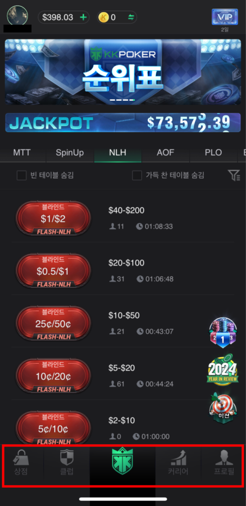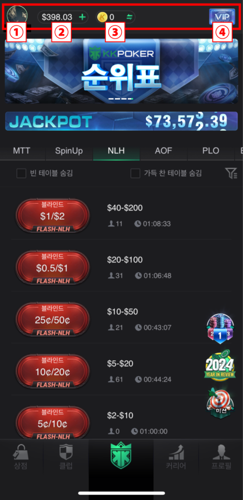 | ショップ | KKポーカーの課金アイテムを購入できる。VIPカードやスタンプ、ラビットカード、カードのデザインなど。 |