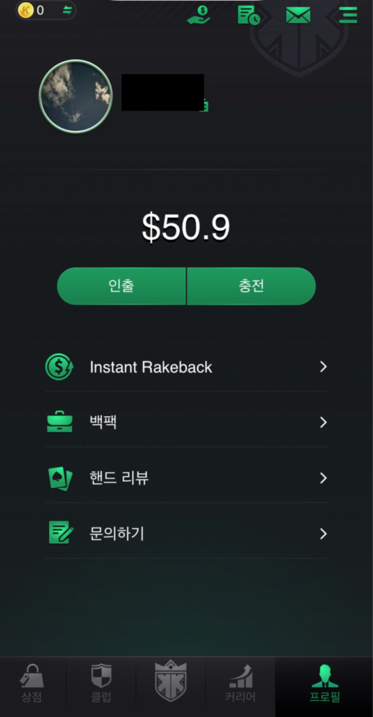level1を完了すると、KKポーカー内の入金、送金の受取の2つが可能となります。