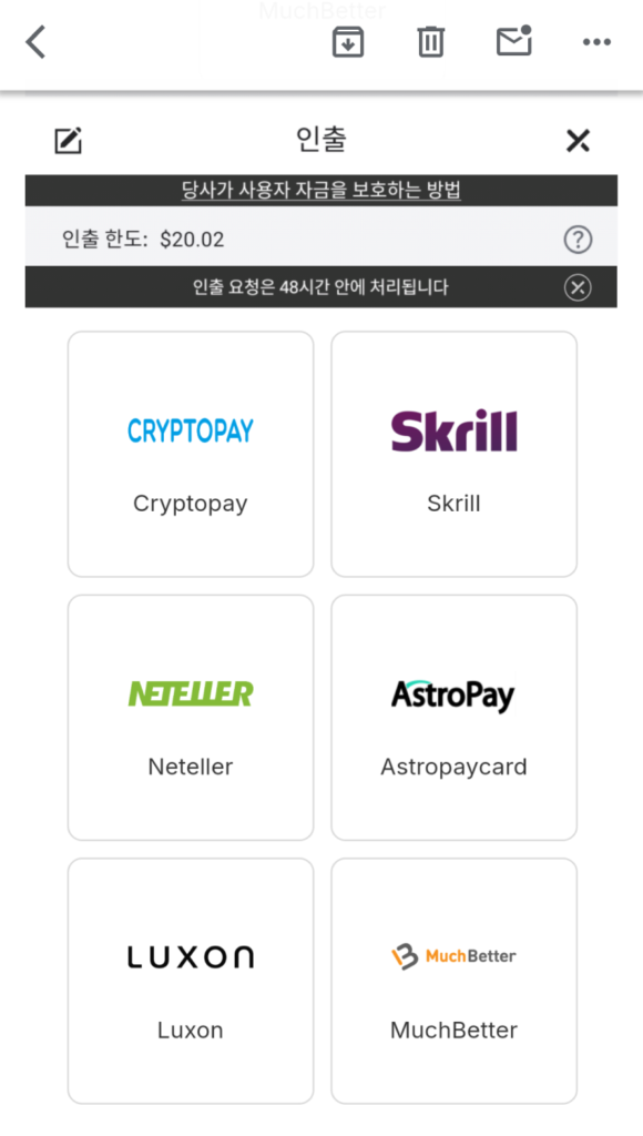 出金時の決済方法は、入金時に利用できた決済方法よりも少なくなっています。