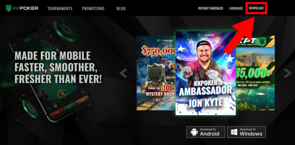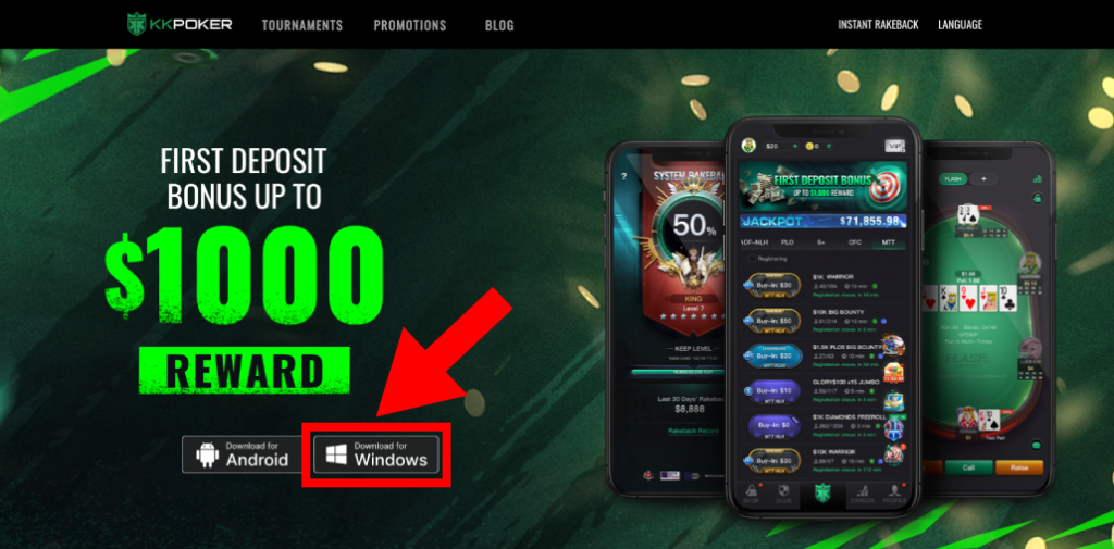 初めに、KKポーカーのアプリをダウンロードします。